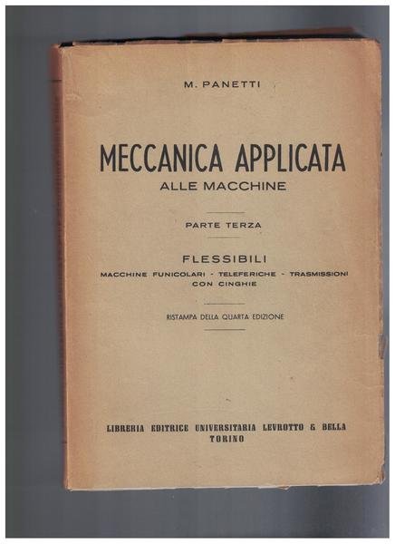 Meccanica applicata alle macchine - Parte terza: flessibili, macchine funicolari, teleferiche, trasmissioni con cinghie