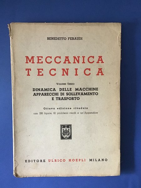 MECCANICA TECNICA - VOL. III - DINAMICA DELLE MACCHINE. APPARECCHI DI SOLLEVAMENTO E TRASPORTO