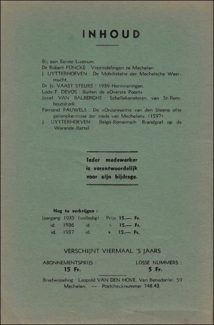 Mechelsche bijdragen. 6e Jaargang Nr 1 Bij een eerste lustrum !