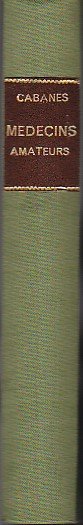 In-16°, pp. 382, (1), legatura t. tela verde con titolo oro su tassello in pelle rossa al dorso. Conservata la brossura editoriale illustrata con i ritratti di alcuni dei 'médecins amateurs' di cui Cabanès discorre. 60 incisioni f.t. Ottimo stato. Prima edizione di questa monografia dedicata a numerosi uomini illustri che, senza aver condotto studi medici specifici e senza aver mai esercitato la professione medica, si improvvisarono talora medici dilettanti: Leonardo da Vinci, Cervantes, Descartes, La Fontaine, Madame de Sévigné, Diderot, Mirabeau, Bernardin de Saint Pierre, Sébastien Mercier, Maine de Biran, il Principe de Ligne.