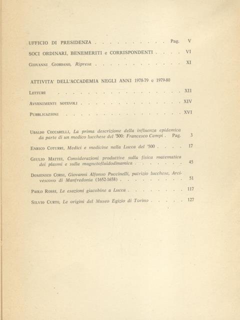 MEDICI E MEDICINE NELLA LUCCA DEL '500. Saggio contenuto in "Atti dell'Accademia Lucchese di Scienze, Lettere ed Arti", nuova serie, tomo XIII.