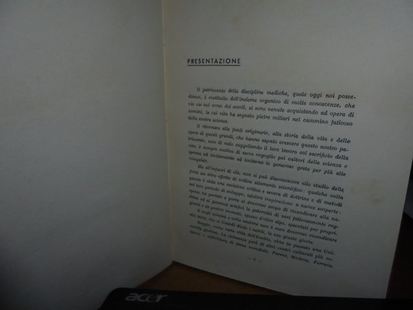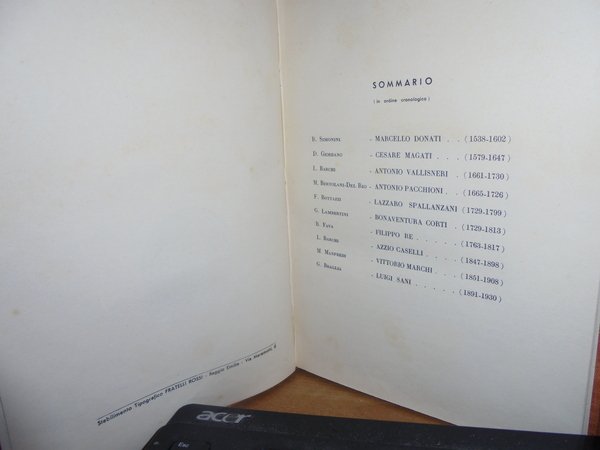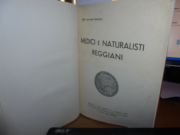 A cura di LUIGI BARCHI. Reggio nell' Emilia, Stab. Tip. Fratelli Rossi, 1935. MEDICI e NATURALISTI REGGIANI. In-8°, tela con titolo in oro entro tassello al dorso, brossure originali conservate. 181 pp. con alcune illustrazioni nel testo e 10 tavole di ritratti protette da veline trasparenti fuori testo. Perfetto esemplare in legatura recente con le copertine originali conservate. Uff. C - IV - 6