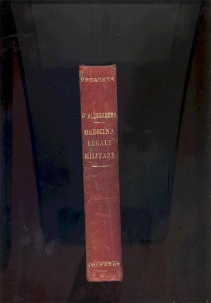 IN 8°,pp.XII+428 CON ILLUSTRAZIONI in b/n INTERCALATE NEL TESTO. OPERA DEL MAGGIORE<BR>MEDICO DOTT. D'ALESSANDRO DELLA SANITA' MILITARE ITALIANA IN CUI RIUNISCE E <BR>TRATTA L'IMPORTANTE,DIFFICILE E DELICATISSIMA MATERIA CON IMPRONTA PERSONALE<BR>DOVUTA ALLA SUA ESPERIENZA COME INSEGNANTE DI MEDICINA LEGALE ALLA<BR>SCUOLA DI SANITA' DI FIRENZE. LEGATURA D'EPOCA IN MEZZA PELLE ROSSA CON TITOLO <BR>E FREGI IN ORO AL DORSO .PIATTI IN TELA ROSSA RIGIDI. OTTIMA CONSERVAZIONE. ID, 815