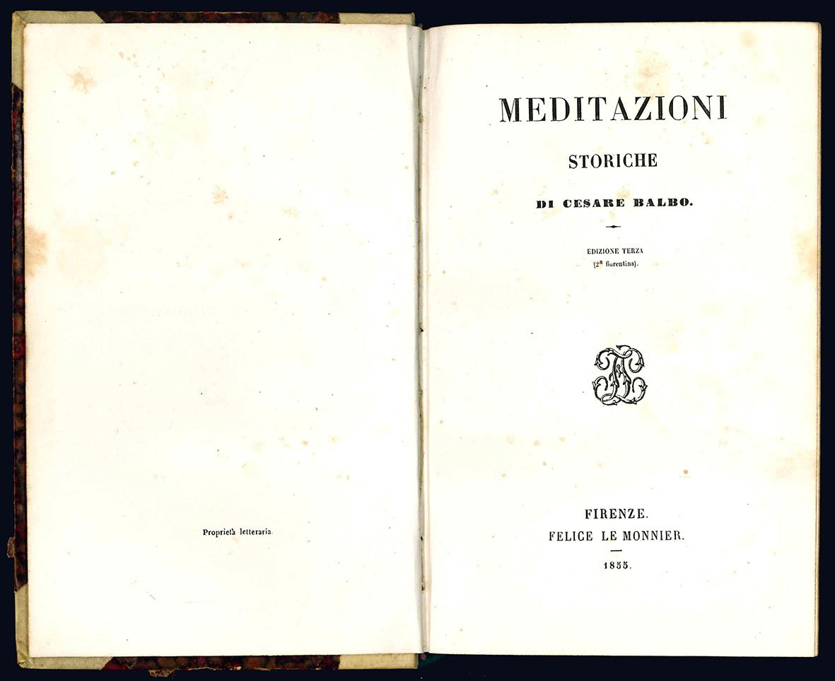 Meditazioni storiche di Cesare Balbo. edizione terza (2^ fiorentina).