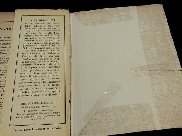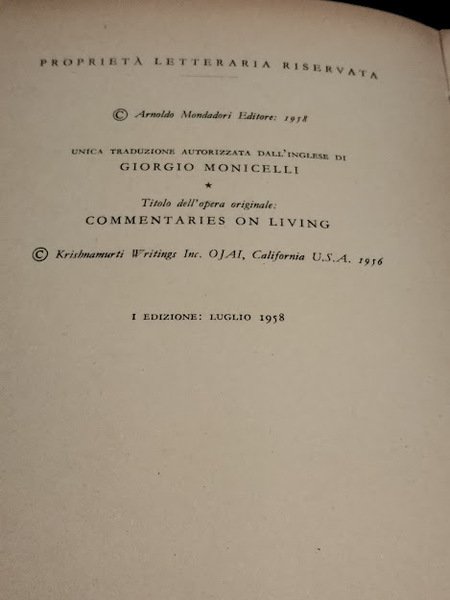 In 8° bross.,pp.249, traduzione dall'inglese di Giorgio Monicelli,titolo originale COMMENTARIES ON LIVING.Taglio sulla copertina posteriore.