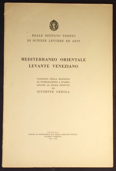 Mediterraneo orientale Levante veneziano. Catalogo della raccolta di pubblicazioni a stampa legate al reale istituto da Giuseppe Gerola.