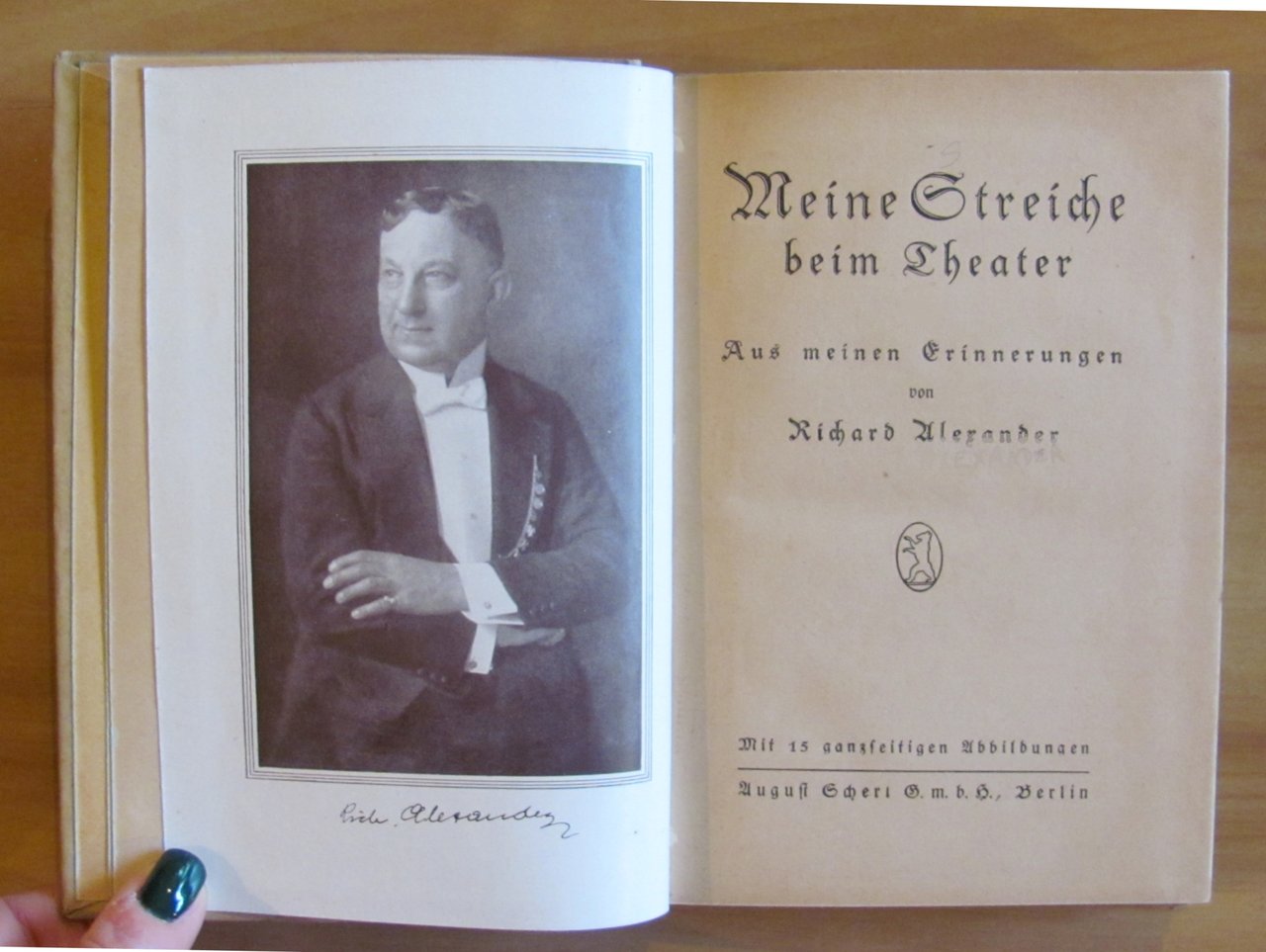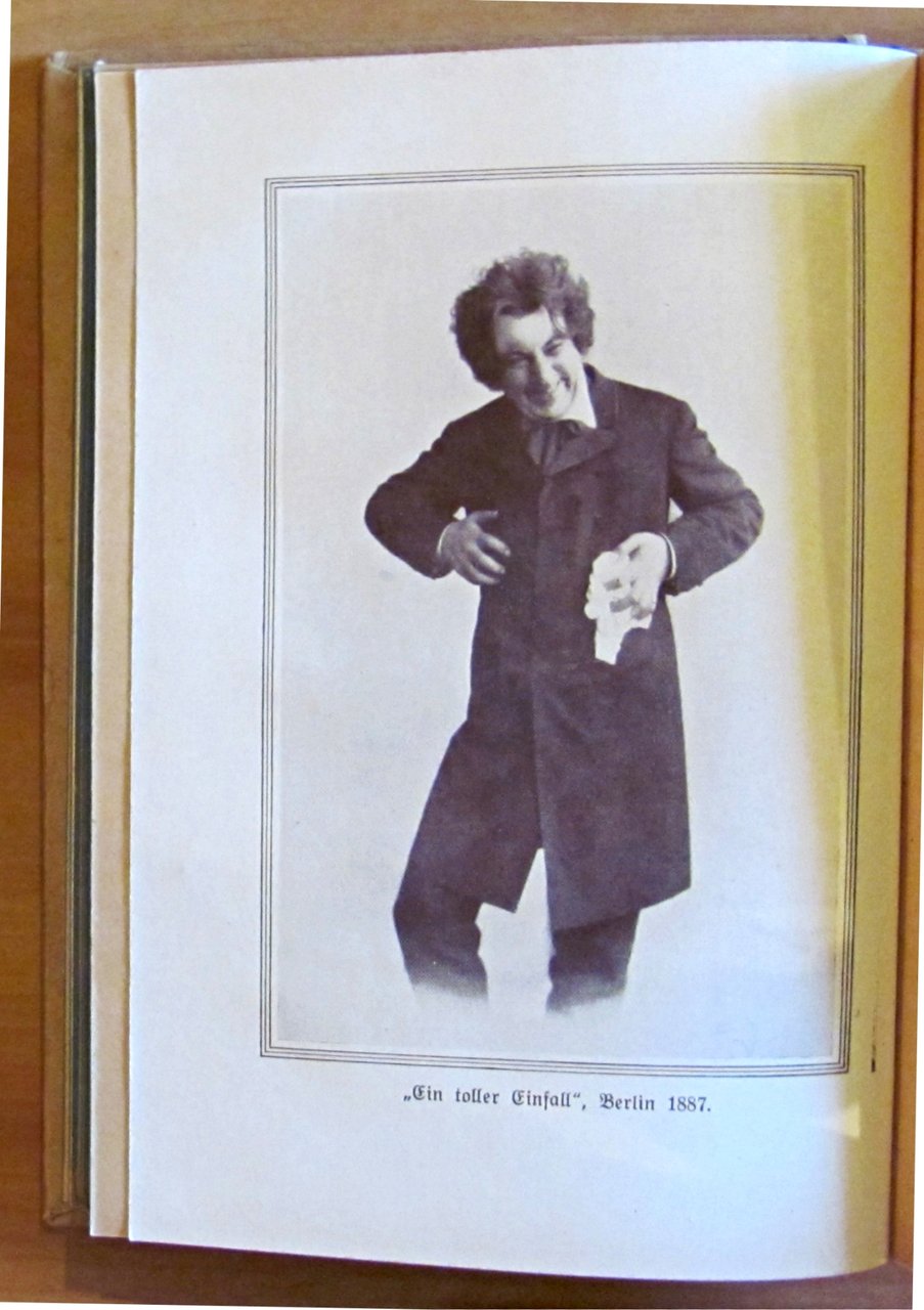 (I miei scherzi a teatro - Dai miei ricordi - Con 15 illustrazioni a piena pagina). Tavole fotografiche in b/n f.t. ante-retro. Ed. August Scheri G.m.b.H. - Berlin, 1922. Cartonato editoriale con dorso in tela. Piccola firma di vecchia appartenenza al risguardo e macchiolina alla retrocopertina. 13,5x19,5; pp.156. RARO e in OTTIMO STATO , Molto buono (Very Good)