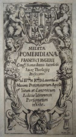 In-8° (cm.151), leg. coeva in p. pergamena floscia (parzialmente integrata); pp. 259 [i.e. 269], [3] in ottimo stato, front. inciso da Giovanni Paolo Bianchi con le armi del dedicatario Lorenzo Massimi; capilettera e finalini xilogr.; antica nota di possesso al margine del front. Prima edizione della raccolta letteraria del Ruggero. Il primo poema descrive Villa Albana; i tre libri con gli epigrammi contengono, tra l'altro, interessanti riferimenti alla Biblioteca Ambrosiana, la Biblioteca Palatina e alcune statue in Milano e Piacenza, l’arco di Urbano VIII, il San Carlone di Arona, così come altri temi barocchi al pari del telescopio galileiano. Cfr. Argelati II, I, 1261. Ottimo esemplare. (SL2)