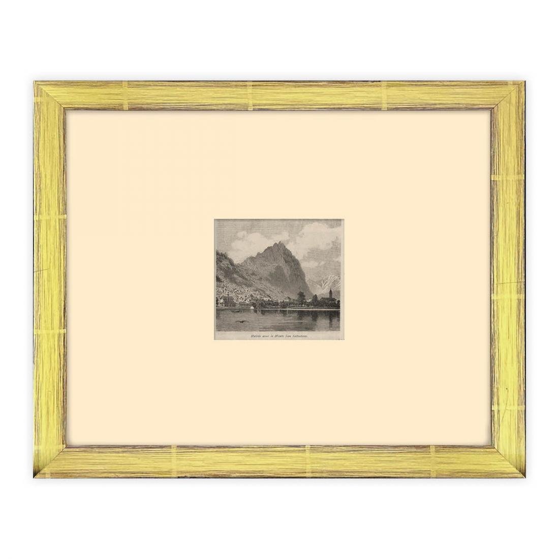 Xilografia originaleTitolo: Melide e Monte San Salvatore 1885Formato (folio) : 9x8 cm / Con cornice: 24x23 cmStato di conservazione: Ottimo, come da fotoCertificato di autenticità C.O.A. Allegato