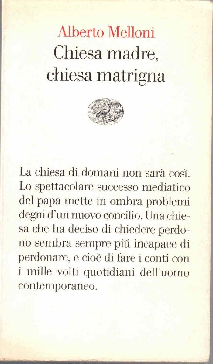 Alberto Melloni, Chiesa madre, chiesa matrigna, Giulio Einaudi editore, Torino 2004, pp. VI, 155, cm 18, br. ed. Collana Vele, vol. 12. Leggere tracce d’uso, minima ingiallitura della carta, qualche sporadica sottolineatura a lapis, ma comunque copia ben conservata.