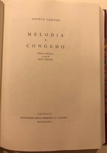 - angelo canossi. Melodie e congedo editrice istituzione della, memoria A. Canossi Bovengo