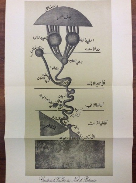 In-8 gr. (mm. 272x218), 3 volumi di cui 1 Atlante, cartonato edit. (lievi abrasioni), pp. (2),V,(3),264; 541,(3) (numeraz. continua). Il primo vol. contiene: Les noms - Les louanges - Les sources - Le cours - La crue - Les iles - Le sommet du Delta - Les branches - Les canaux. Il secondo è dedicato a: Les nilomètres - Les niveaux - Les crues effectives - L'exhaussement du sol - Les événements concernant le fleuve depuis 152 jusqu'à 1296 de l'Hégire (769-1879 après J.-C.).L'Atlante contiene 22 carte geografiche e piante, per lo più a doppia pagina o più volte ripieg., a colori o in bianco e nero (Le cours du Nil, d'après la carte de Ptolomée.. Carte de la vallée et du bassin du Nil - Le Delta - Carte générale des cours d'eau d'Egypte (époque arabe) - Carte des bassins de la province de Béhéra, d'Aboul Hassan El Makhzoumi - Carte des canaux du Fayoum (1031 ap. J.-C.), ecc.Firma di apparten. ms. alle copp. e ai frontesp., altrimenti esemplare ben conservato. .