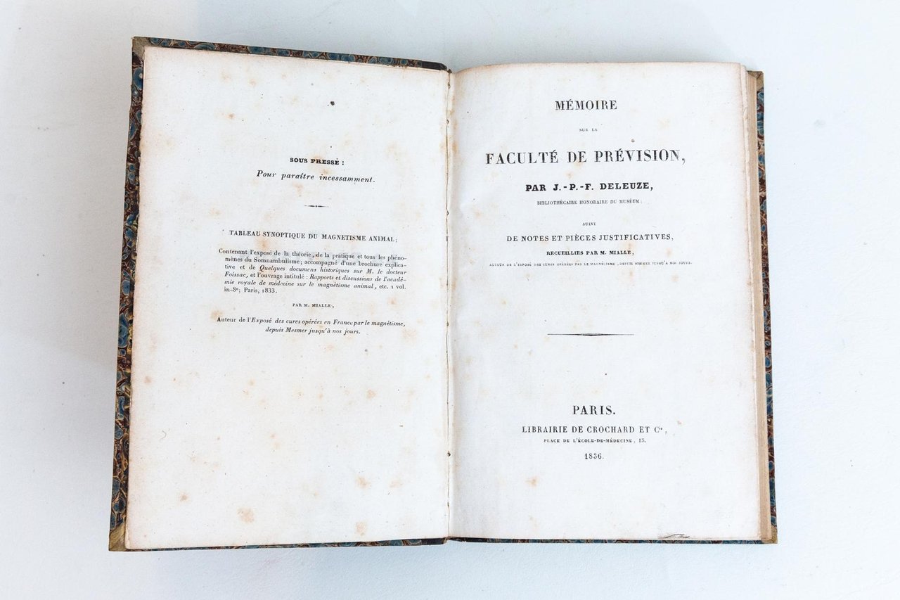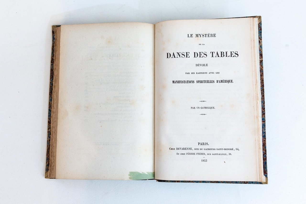 Mémoire sur la faculté de prévision par J. P. F. Deleuze; suivi de notes et pièces justificatives recueilliers par M. Mialle. LEGATO A: Des tables tournantes et du panthéisme. LEGATO A: Le mystère de la danse des tables dévoilé par ses rapports avec les manifestations spirituelles d'Amérique. Par un Catholique