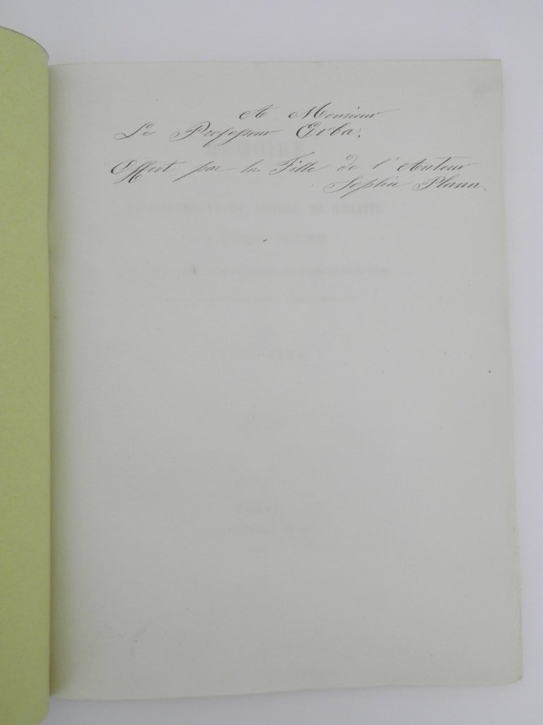 4°, pp. 86, brossura cartacea gialla, esemplare in barbe a carte intonse, bella copia con dedica della figlia dell'autore, Sophie Plana, a Giuseppe Bartolomeo Erba. Estratto da: Memorie dell'Accademia delle Scienze di Torino. Ser. 2. Tome 20. Due copie in ICCU. *** TUTTI I NOSTRI LIBRI SONO VISIBILI PREVIO CONTATTO MAIL O TELEFONO NELLA NUOVA SEDE DI MILANO: LIBRERIA COSMOPOLIS, VIA JOMMELLI, 22. ***