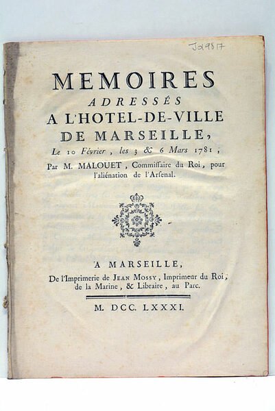 - A Marseille, de l’imprimerie de Jean Mossy, 1781.