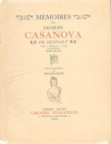 Memoires de Jacques Casanova de Seingalt. Colliges par René Gros. Illustrations de Brunelleschi. Vol. I: Extraits 1734-1755; Vol. II: Extraits 1755-1772, opera completa in 2 voll.