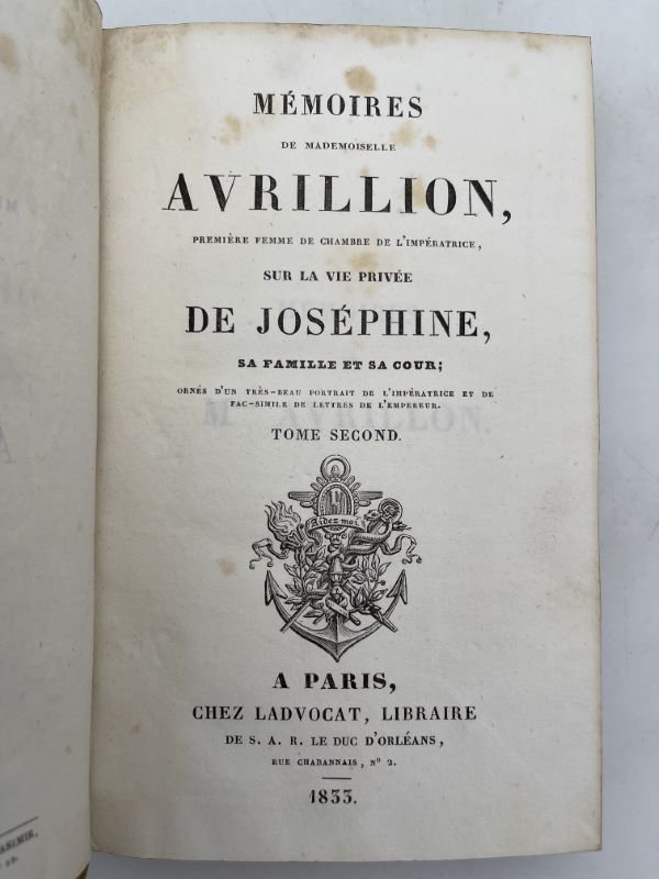 Mémoires de Mademoiselle Avrillion, première femme de chambre de l'Impératrice, sur la vie privée de Joséphine, sa famille et sa cour