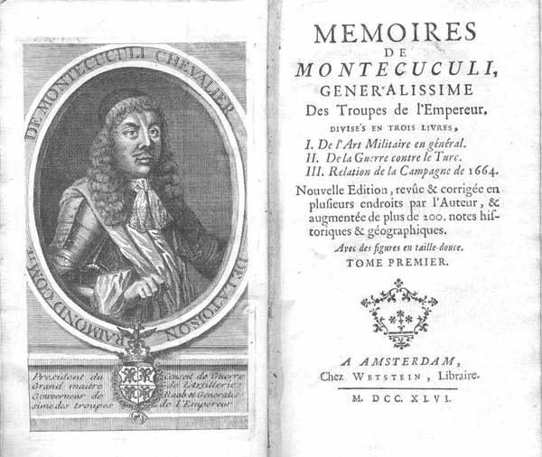 MEMOIRES DE MONTECUCULI, GENERALISSIME DES TROUPES DE L'EMPEREUR, DIVISES EN TROIS LIVRES. - Nouvelle édition, revûe & corrigée en plusieurs endroits par l'Auteur, & augmentée de plus de 200 notes historiques et géographiques.