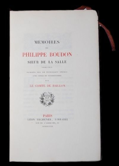 Mémoires de Philippe Boudon, Sieur de La Salle (1626-1652), publiés sur le manuscrit inédit avec notes et introduction par le comte de Baillon.