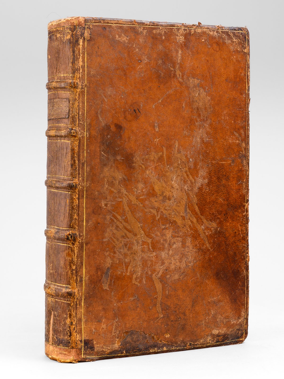 1 vol. in-folio reliure pleine basane marron, dos à 5 nerfs dorés, Chez Alethinosgraphe de Clearetimelee & Graphexechon de Pistariste, A l'enseigne des trois Vertus couronnées d'Amaranthe, s.d. [circa 1638 - 1640 ], 4 ff., 435 pp. [ mal chiffré 535 ], 4 ff., 459 pp. [ avec 2 ff. chiffrés 59-60) Ce très fameux ouvrage fut tout d'abord publié à peu d'exemplaires, imprimé en secret au château de Sully par un Maximilien de Béthune (1559-1641) âgé et en disgrâce. Il s'agit ici de l'un des premières et des plus célèbres contrefaçons. Les deux feuillets de titre sont bien reconnaissables ornés des 3 "V" des 3 vertus théologales, peints en vert, surmontés de la couronne d'Amaranthe, peinte en vert et rouge. On peut lire en garde cette amusante note manuscrite ancienne, à l'encre : "Les Mémoires du Duc de Sully ont été imprimés en 2 vol. in fol. environ en 1649 ou 1650, mais cette édition a été fort chatrée par ordre de Mr le Prince qui donna 200 écus, afin qu'on ota ce qui y étoit contre la naissance de feu Mr. son père. Voy. Gui Patin lettre 34 in fin." Mais cette lettre de Guy Patin datant du 28 février 1650, ce denier évoquait plus probablement l'autre contrefaçon rouennaise parue sous la Fronde. Bon état (reliure frottée avec usures et anciennes restaurations en queue et tête, gardes volantes un peu faibles, de rouss., ex-libris ms. ancien "Thevenet") pour ce monument de l'Histoire de France, mais aussi de l'histoire de l'économie, ainsi que de l'édition. Brunet, V, 589 ; Kress, I, 537 ; INED, 4259