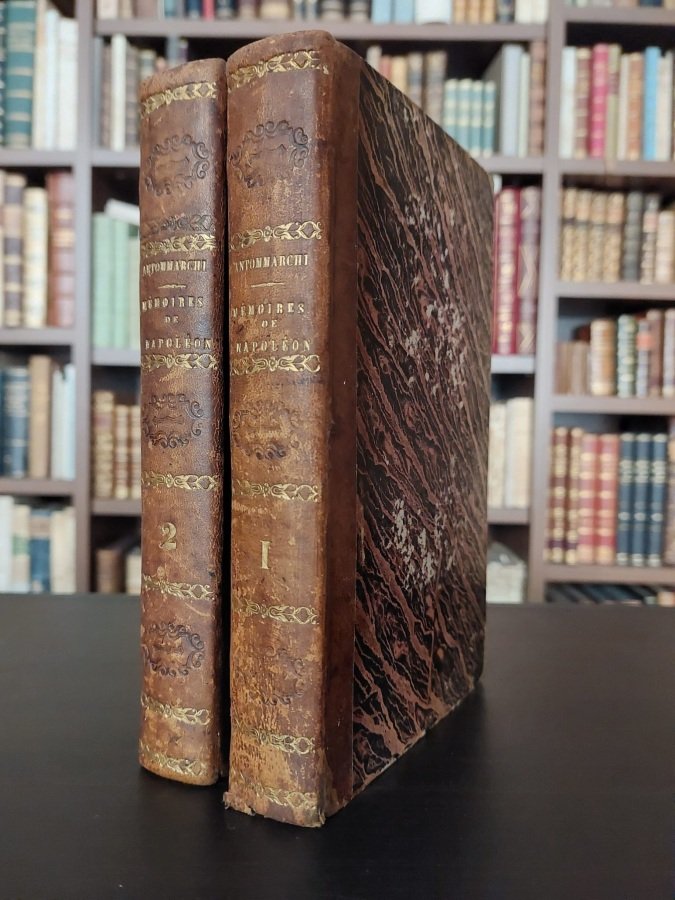 2 volumi in-8° (cm. 19,6), legature coeve in mezza pelle nocciola, dorsi con titoli e fregi in oro e altri fregi a secco (lievi tracce d'uso e abrasioni ai piatti), tagli spruzzati in blu; pp. [4] IV 470 [2], [4] 460 in buono stato (alcune fioriture). Prima edizione di questo celebre scritto del medico personale di Napoleone durante l'esilio di Sant'Elena. L'opera è una delle fonti principali sugli ultimi mesi di vita di Napoleone e sulle possibili cause della morte dell'imperatore. Buon esemplare. (NO5)