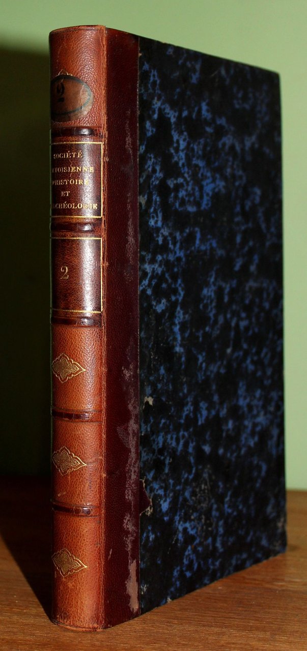 In 8°, pp. LVI, 310, (2). Mezza pelle dell'epoca. Dorso con titoli e fregi oro. Copia in buono stato. Tra i vari studi si segnala: RABUT, François. Numismatique savoisienne. Tiers de sol mérovingiens inédits. (Con una tavola fuori testo) - DE MORTILLET, Gabriel. Note sur la voie romaine du Faucigny. - RABUT, François. Documents relatifs au couvent de Saint Dominique de Chambéry. - Bulletin bibliographique de la Savoie. Deuxième année (1857). - D'ARVE, comte Martin. Sur l'ancienneté, les noms et la situation du diocèse de Maurienne. Manuscrit de Rd. Esprit Combet. - RABUT, François. Franchises de Montmélian et d'Arbin.