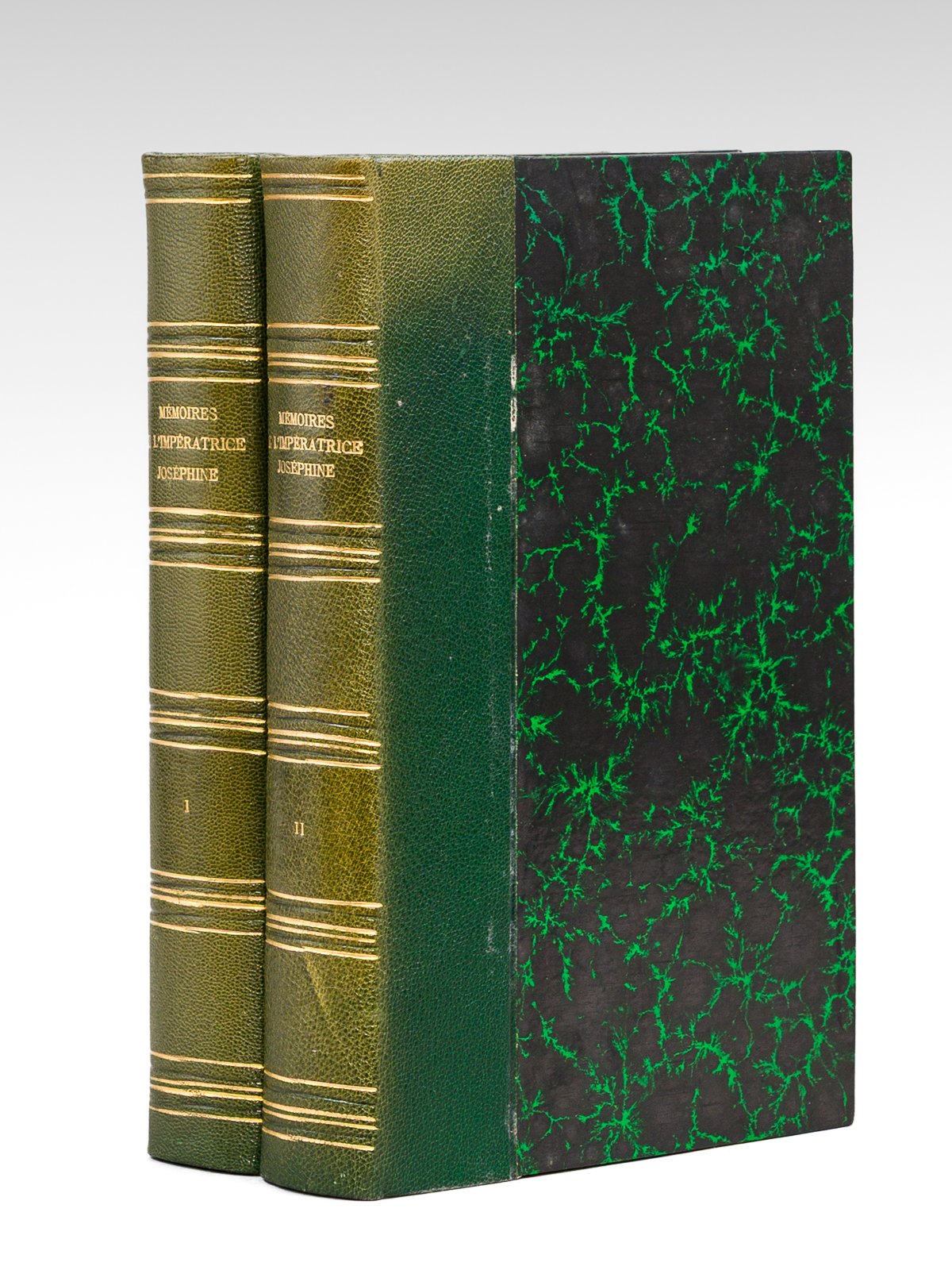 Seconde Edition, augmentée de plus de 300 Notes inédites et suivi des Derniers Souvenirs de Napoléon Bonaparte à l'Ile Sainte-Hélène, 2 vol. in-8 reliure postérieure demi-chagrin vert, couvertures conservées, L'Auteur-Editeur, Dondey-Dupré Père et Fils, Paris, 1827, 462 pp. et 1 f. n. ch., avec portrait en frontispice ; 479 pp. avec portrait en frontispice et 1 fac-similé hors texte Les 2 premiers tomes (sur 3 ) de la seconde édition. Etat satisfaisant (2 tomes sur 3, mouill. au frontispice du tome second, avec seulement 3 planches hors texte). Prix en l'état.