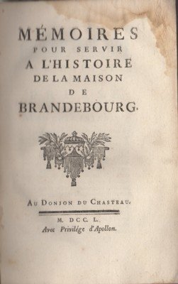 Mémoires pour servir a l`Histoire de la Maison de Brandebourg.