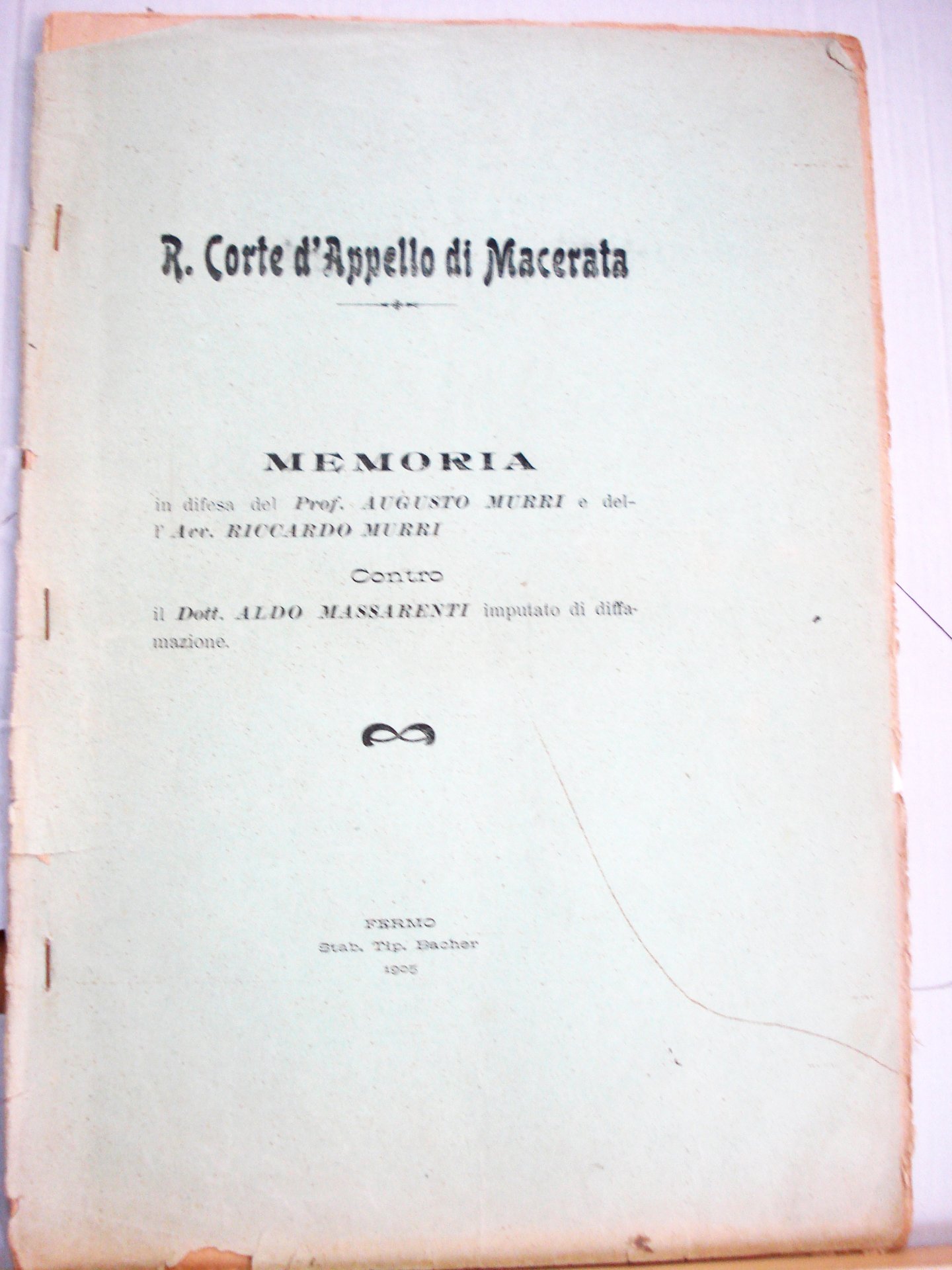 MEMORIA IN DIFESA DEL PROF. AUGUSTO MURRI E DELL'AVV. RICCARDO MURRI CONTRO IL DOTT. ALDO MASSARENTI IMPUTATO DI DIFFAMAZIONE.
