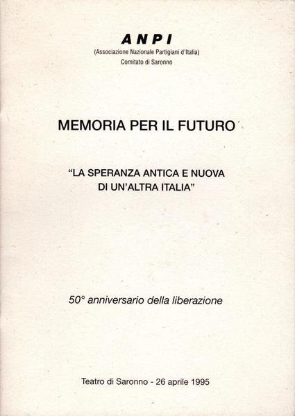 Memoria per il futuro. La speranza antica e nuova di un'altra Italia, prima edizione 1955, pp. 25, formato 15 x 21.<BR>Copertina morbida di colore crema con titoli in marrone al piatto anteriore. <BR>Ottime condizioni. <BR>