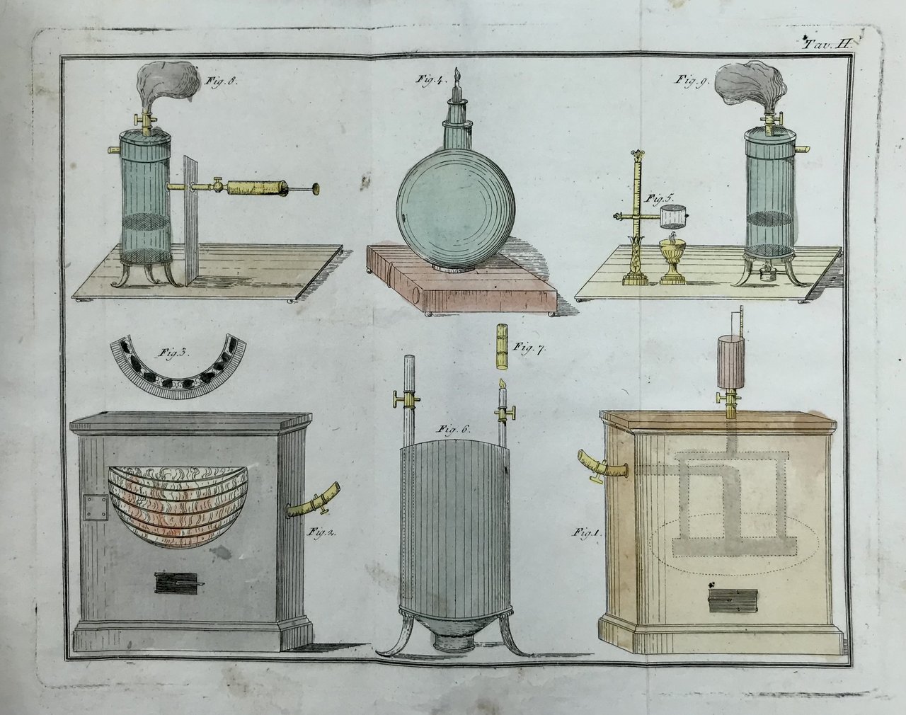 In 8vo (230x140 mm). VIII, 111, [1], VI pp. Completo delle 2 tavole ripiegate fuori testo, incise e in acquerellatura coeva, a riprodurre strumenti per l’illuminazione a gas. Mezza pelle dell’epoca, con titolo in oro su tassello in carta al dorso e piatti in cartonato marmorizzato. Ottimo esemplare a pieni margini e in parte ancora a fogli chiusi.