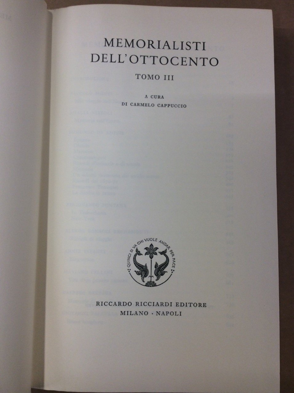 MEMORIALISTI DELL'OTTOCENTO. Tomo III.