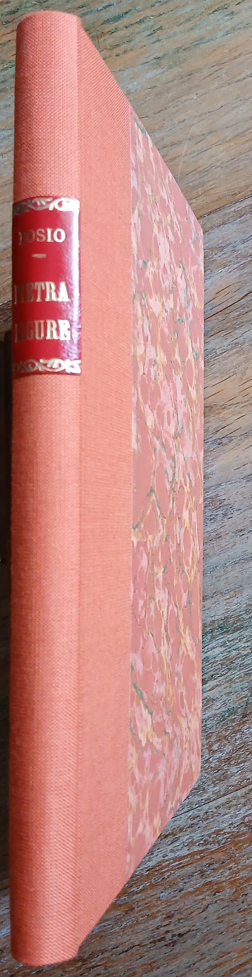 In 8°, legatura moderna in mezza tela, al dorso tassello in pelle con titoli dorati, carta marmorizzata ai piatti, conservate le copertine della brossura editoriale, pp. 156, con una pianta di Pietra Ligure a doppia pagina in fine. Piccolo restauro al margine bianco superiore di pagina 135, peraltro ottimo stato di conservazione. Edizione originale.