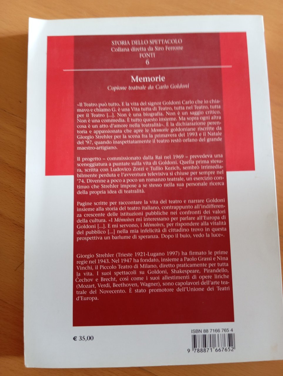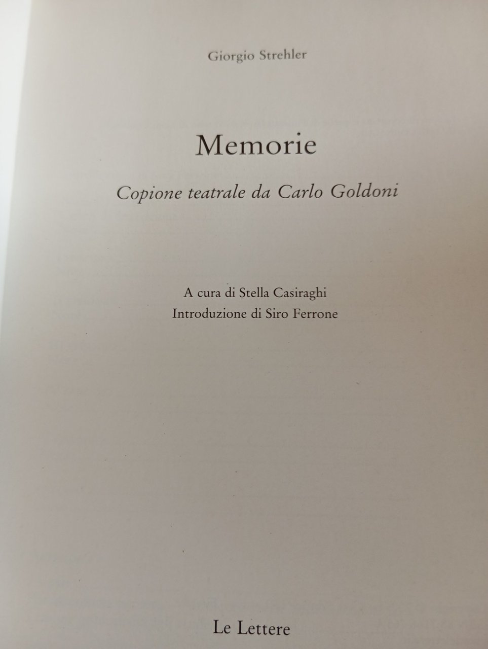 Memorie. Copione teatrale da Carlo Goldoni, Giorgio Strahler, Le Lettere, 2005