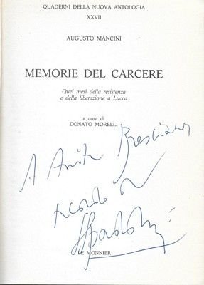 In-8°, legatura in brossura editoriale, pp.141, con ritratto di Mancini all'antiporta e dedica autografa firmata al frontespizio del curatore.