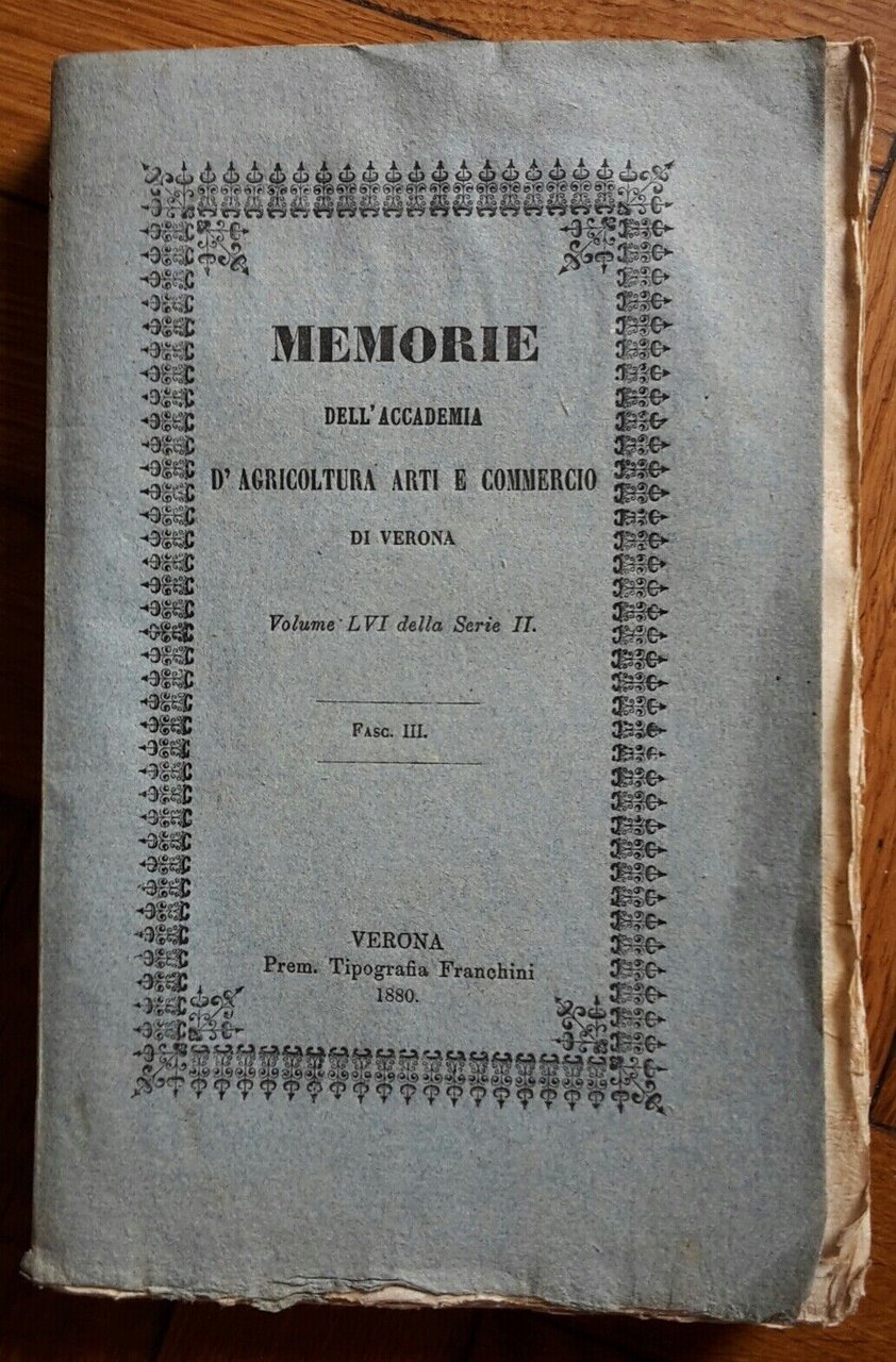 MEMORIE DELL'ACCADEMIA D'AGRICOLTURA ARTI DI VERONA VOL. 56 SERIE II 1880