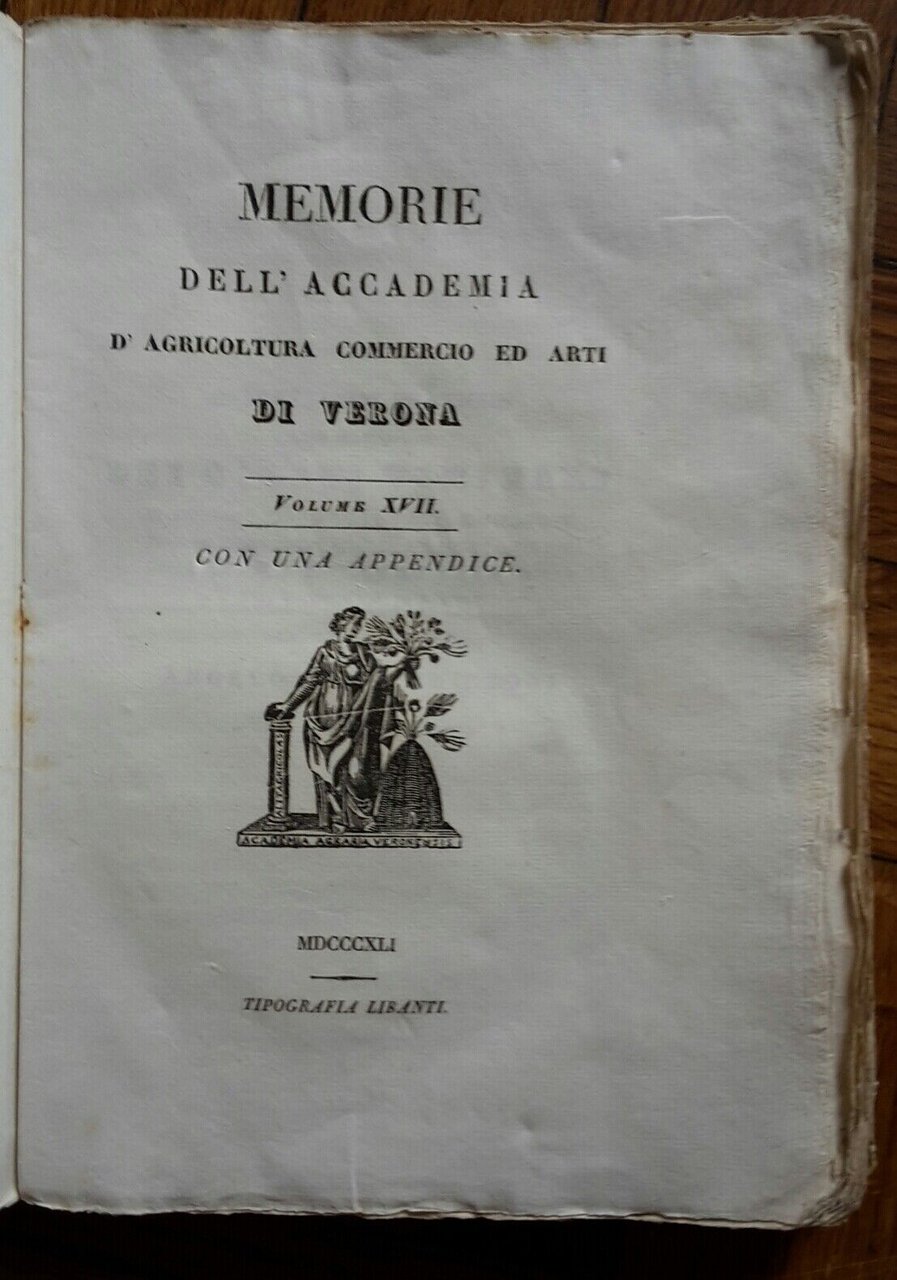 MEMORIE DELL'ACCADEMIA D'AGRICOLTURA COMMERCIO DI VERONA VOL. 17 LIBANTI 1841