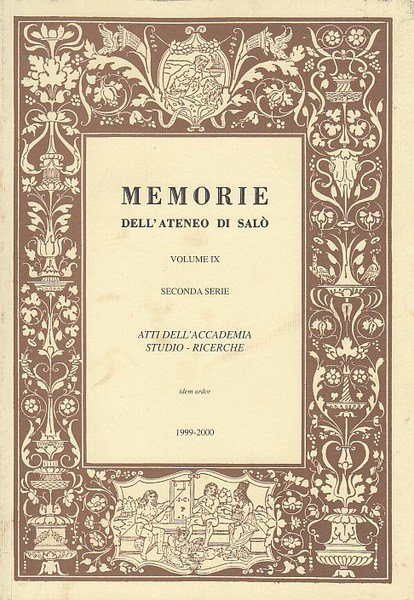 Memorie dell'ateneo di Salò. Volume IX seconda serie Atti dell'accademia Studi e Ricerche. Anno 1999-2000