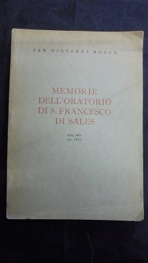 MEMORIE DELL`ORATORIO DI S. FRANCESCO DI SALES 1815 AL 1855