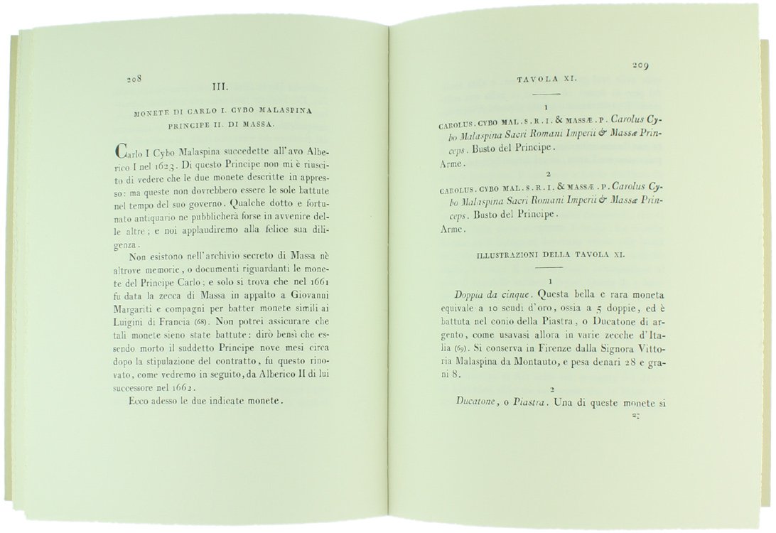 MEMORIE DELLA FAMIGLIA CYBO E DELLE MONETE DI MASSA DI LUNIGIANA.