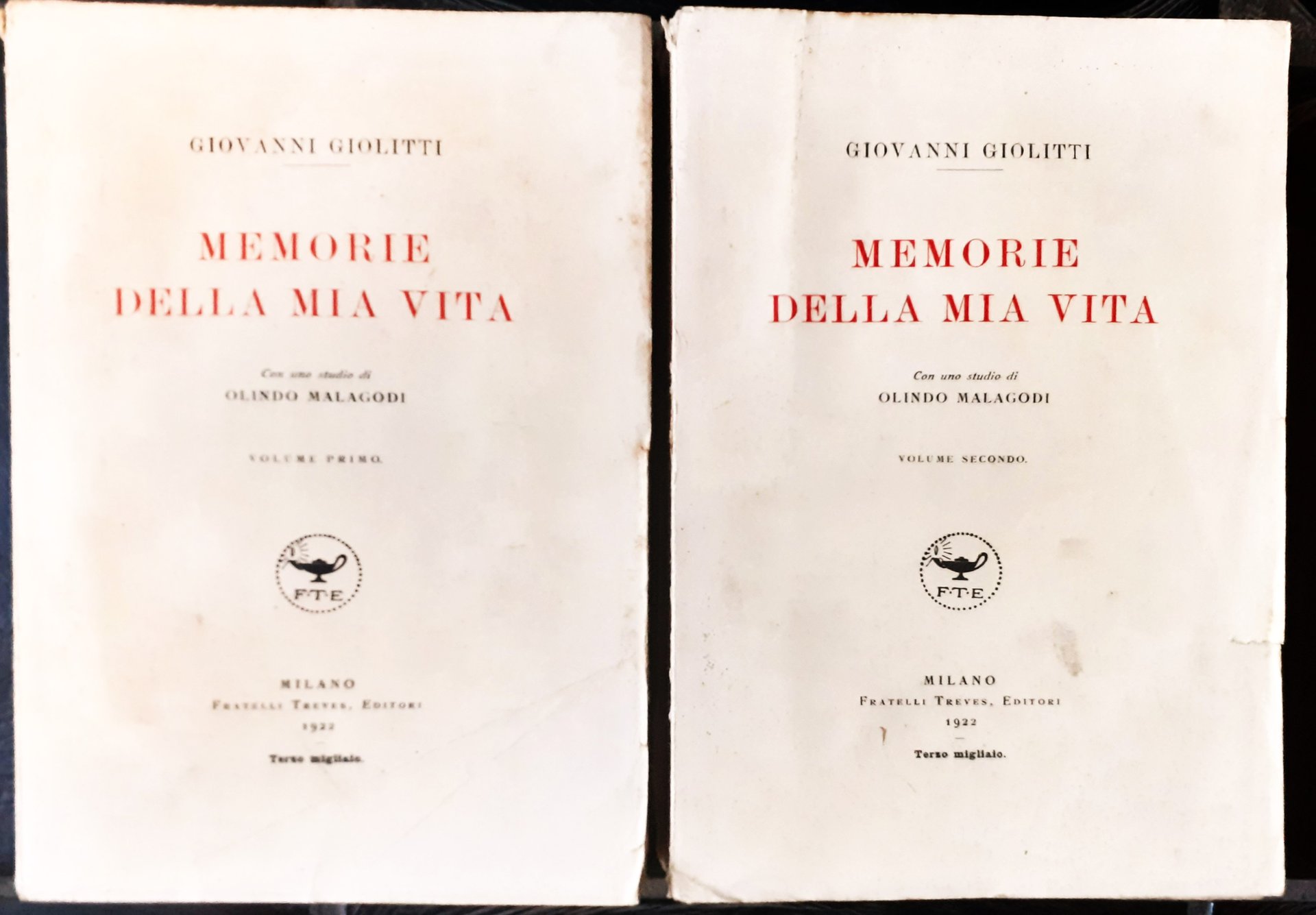Terzo migliaio. In-8; pp. 4 nn+XXXVI+1-278+2 nn (primo vol.), 4nn+279-628+2nn (secondo vol.); bross. In antiporta del primo volume ritratto fotografico in b/n applicato di G. Giolitti. Stato buono