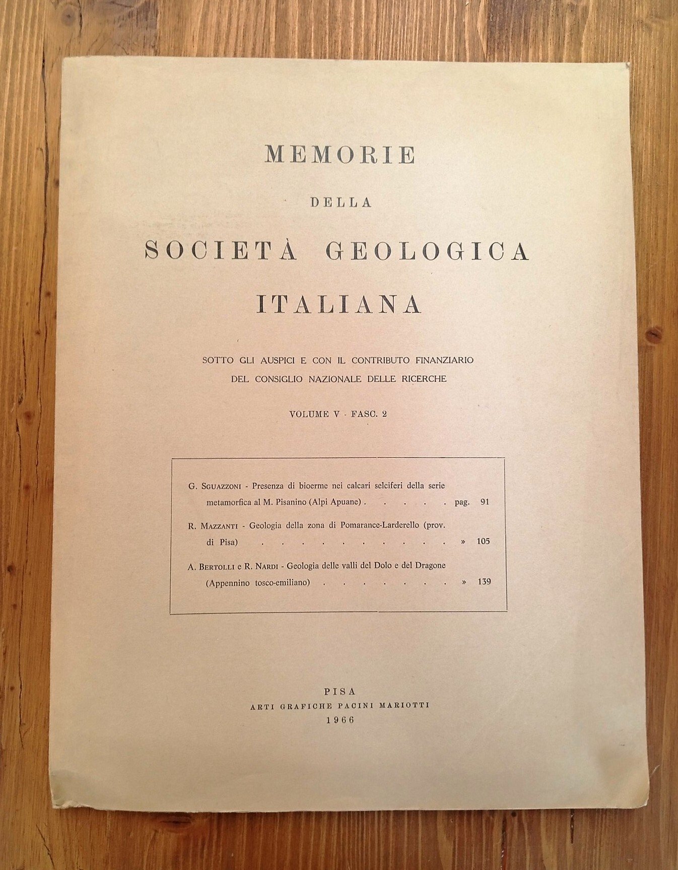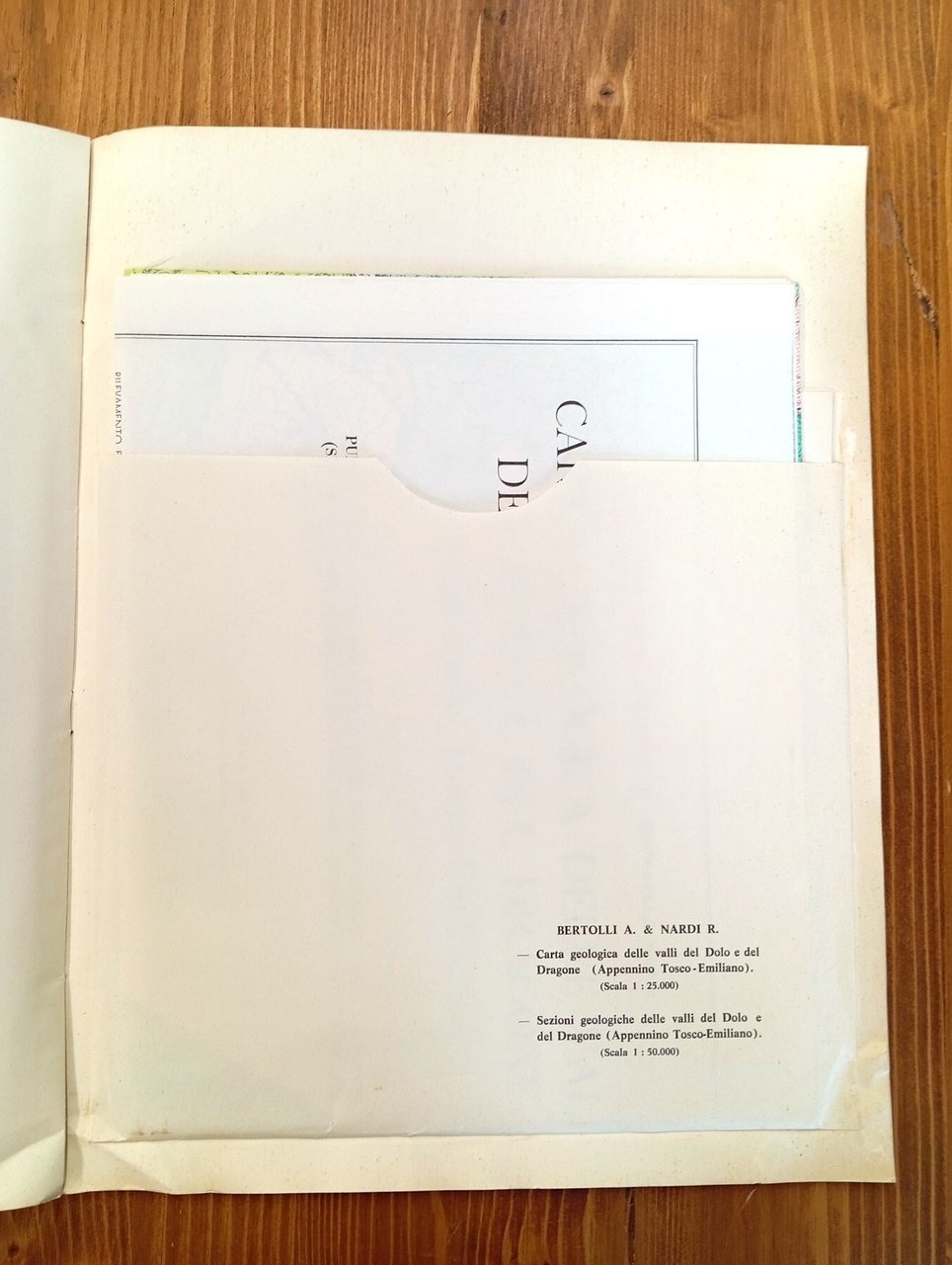 Brossura editoriale in grande formato (31 cm), pagine numerate da 91 a 164 con figure e grafici in nero a corredo del testo; allegate in apposite tasche le seguenti grandi carte a colori: Carta geologica dei dintorni di Pomarance - Larderello (Prov. di Pisa) - Sezioni geologiche dei dintorni di Pomarance - Larderello (Prov. di Pisa) - Carta geologica delle valli del Dolo e del Dragone (Appennino Tosco-Emiliano) - Sezioni geologiche delle valli del Dolo e del Dragone (Appennino Tosco-Emiliano). Lievi e ordinari segni da scaffalatura, nel complesso ottimo esemplare di una pubblicazione non comune -- INDICE degli articoli: G. SGUAZZONI, Presenza di bioerme nei calcari selciferi della serie metamorfica al M. Pisanino (Alpi Apuane) - R. MAZZANTI, Geologia della zona di Pomarance-Larderello (Prov. di Pisa) - A. BERTOLLI e R. NARDI, Geologia delle valli del Dolo e del Dragone (Appennino Tosco-Emiliano)