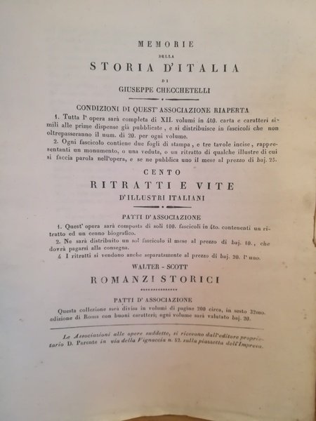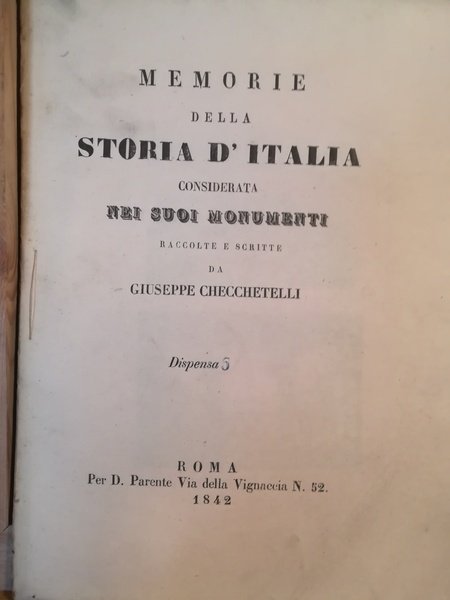 Memorie della Storia d'Italia considerata nei suoi monumenti. Dispense da 1 a 32.
