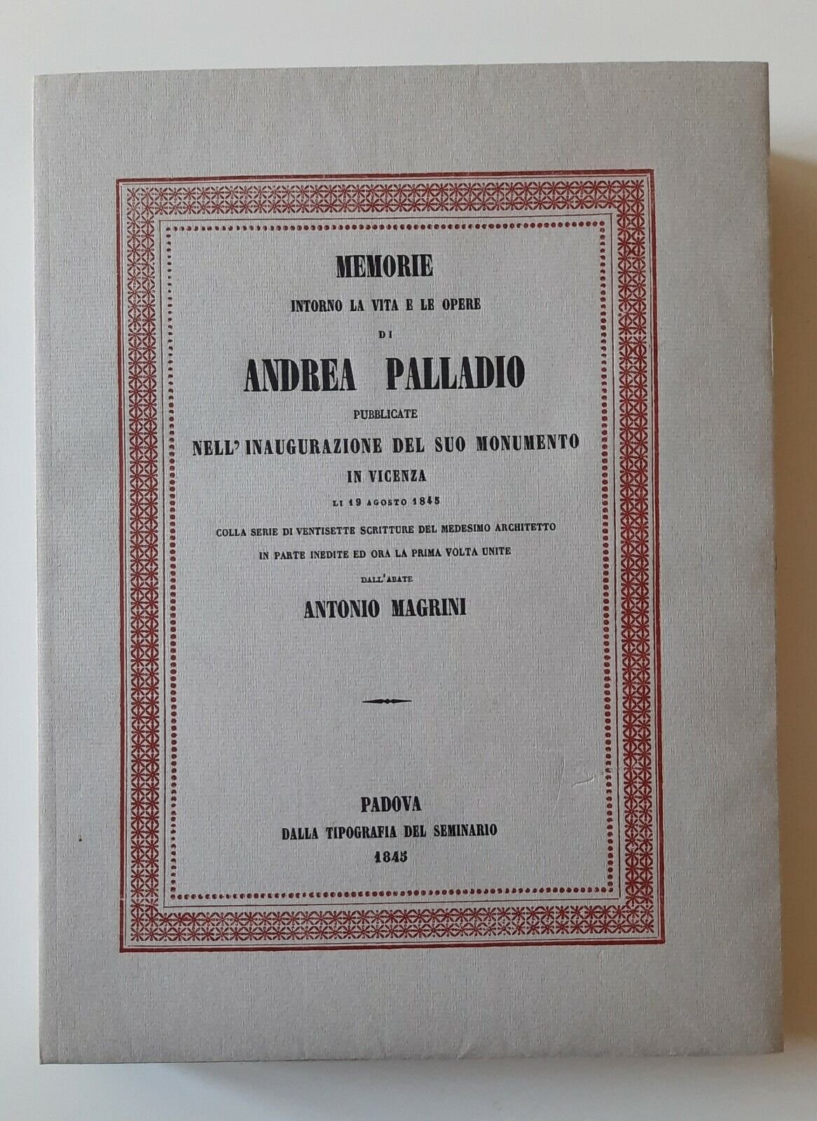 MEMORIE INTORNO LA VITA E LE OPERE DI ANDREA PALLADIO PUBBLICATE NELL'INAUGURAZIONE DEL SUO MONUMENTO IN VICENZA