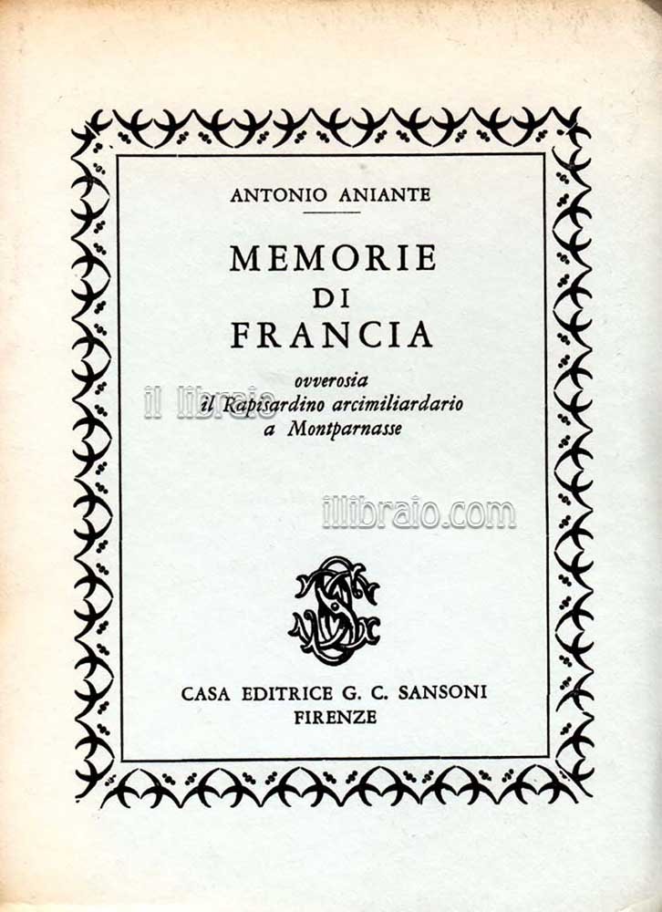 Memorie di Francia ovverosia il Rapisardino arcimiliardario a Montparnasse