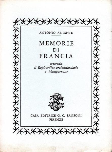 "Memorie di Francia, ovverosia il Rapisardino arcimiliardario a Montparnasse", prima edizione marzo 1973, pp. 137, formato 11 x 14,5.