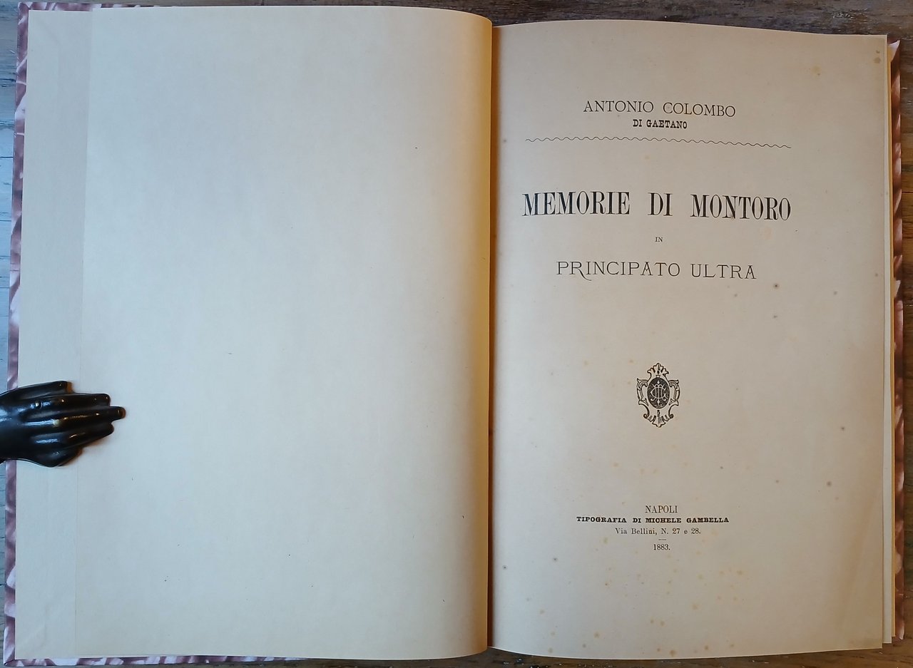 (Storia locale - Campania - Provincia di Avellino) In 8°, legatura moderna in mezza tela rossa, applicata al piatto anteriore la riproduzione del frontespizio, pp. 122,(2). Qualche traccia di ossidazione ad alcune pagine, peraltro volume ben conservato. Edizione originale, stampata in 200 copie fuori commercio.