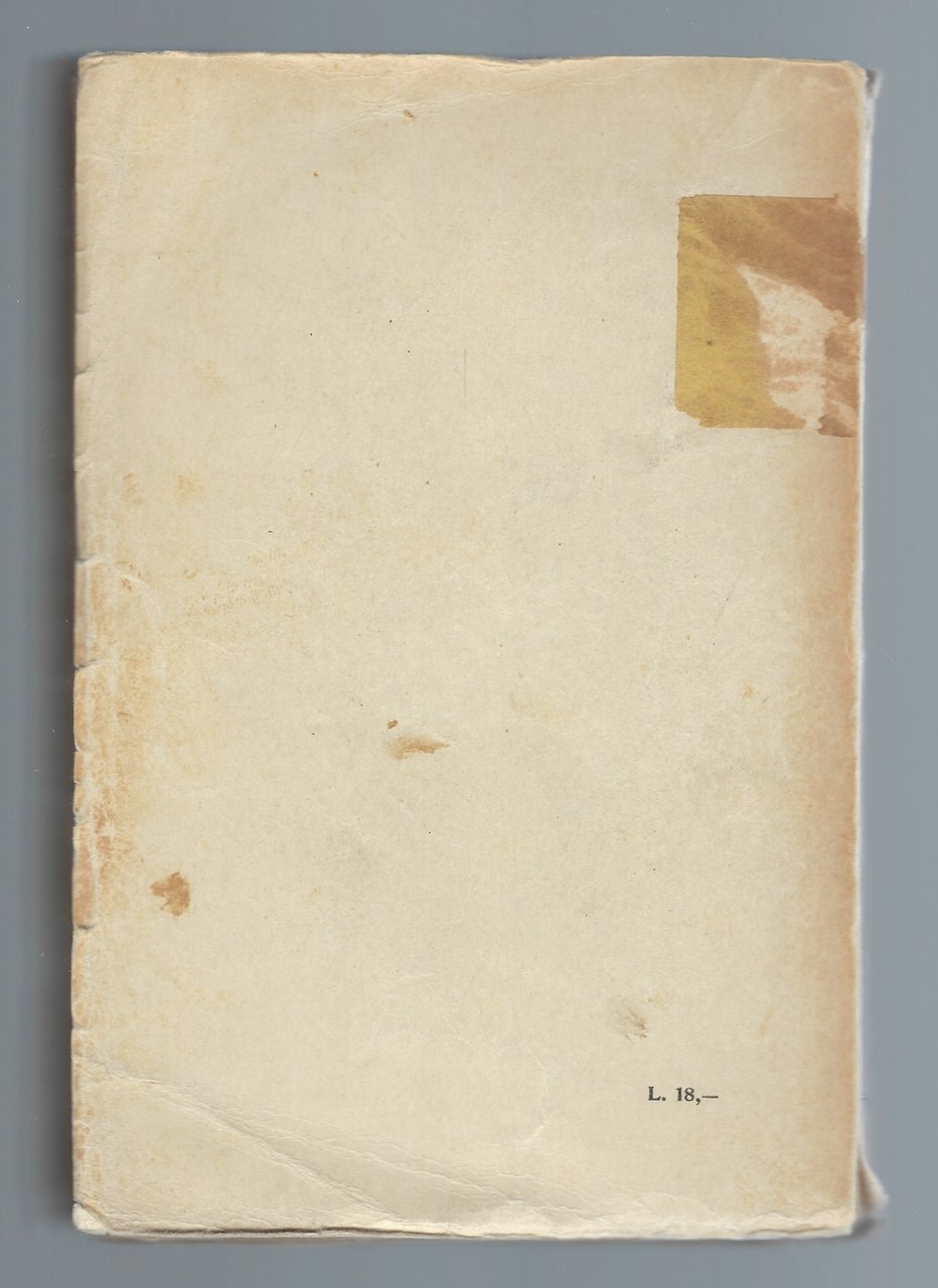 Brossura editoriale con titoli e marca editoriale in rosso e nero al piatto anteriore.