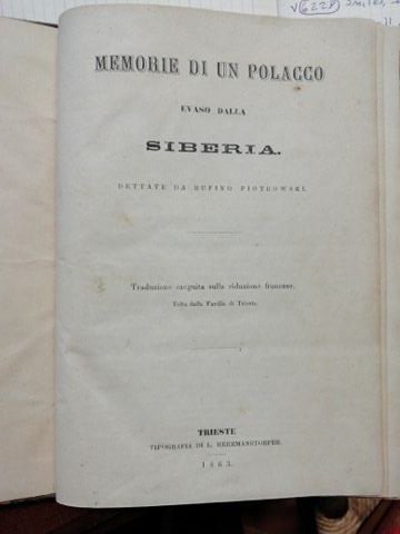 PRIMA EDIZIONE con traduzione eseguita sulla riduzione francese tratta dalla Favilla di Trieste. Figlio di Józef e Agnieszka nata Zakusiło, discendente dalla piccola nobiltà, durante la Rivolta di Novembre servì sotto il comando del generale Józef Dwernicki ; combatté nella battaglia di Ostrołęka e nella difesa di Varsavia . Dopo la caduta della rivolta emigrò in Francia. Negli anni 1833-1835 fu membro della Società Democratica Polacca . Dal 1843, dopo essere stato inviato come emissario in patria , organizzò una cospirazione a Kamianets-Podilskyi . Fu catturato, condannato e imprigionato a Kiev , e poi condannato ai lavori forzati vicino a Omsk . Nel 1846 fuggì attraverso Solikamsk e Velikij Ustjug ad Arcangelo , da dove si diresse a San Pietroburgo , poi a Riga , da dove lasciò la Russia raggiungendo la Francia via Königsberg .Nel 1867 tornò in Polonia. Scrisse le Memorie del suo soggiorno in Siberia (volumi 1-3 pubblicati nel 1860-1861 da Księgarnia Jana Konstantego Żupański, 1860), che furono tradotte in diverse lingue straniere (inglese, danese, francese, olandese, tedesco, russo, svedese). Copertina cartonata rifatta. Pp. 84. Buone condizioni.