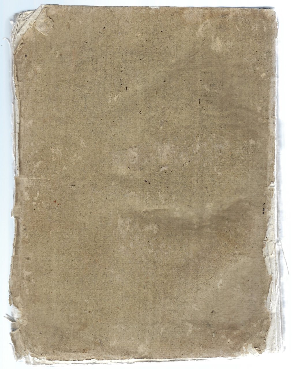 Coperta usurata e un po' rovinata, con piccoli strappi, pieghe e segni vari.